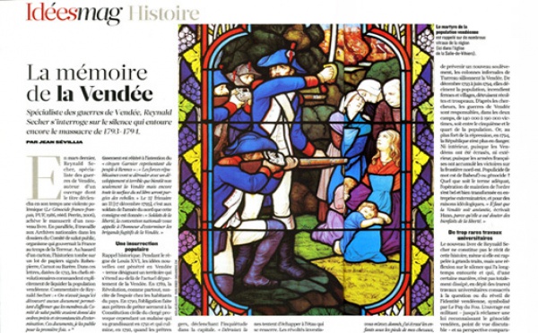 Le Figaro Magazine paru aujourd'hui met à l'honneur sur une double page le dernier livre de Reynald Secher, « Vendée, du génocide au mémoricide ». Inséré dans la rubrique Idéesmag Histoire, pages 110-111, l'article rédigé par Jean Sévillia, La mémoire de la Vendée, offre une présentation concise...