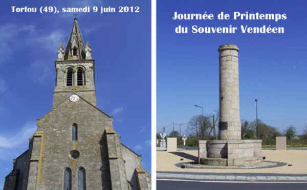 Le Souvenir Vendéen organise le samedi 9 juin prochain sa Journée de Printemps à Torfou (Maine-et-Loire). La commune fut le théâtre d'une bataille retentissante, le 19 septembre 1793, commémorée par une haute colonne de granit fraîchement restaurée et à nouveau inaugurée pour cette occasion....